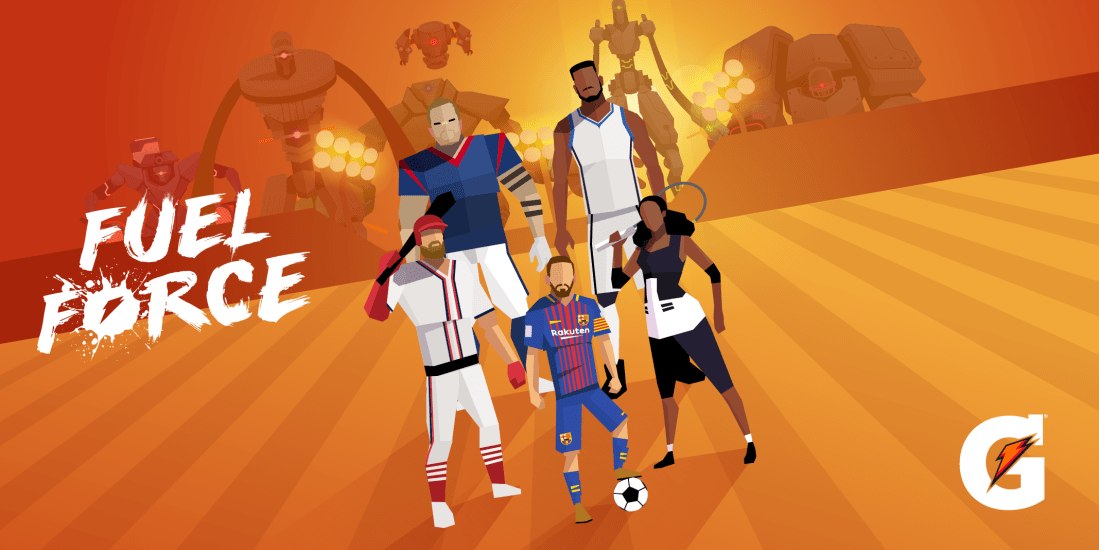 Gatorade: Fuel Force is a webbrowser game and one of the first Snapchat games. With this quick rhythm game you can control the world’s top athletes to beat alien robots from space across six sports. Users can access the game by scanning one of the 300 million Fuel Force Snapcodes on Gatorade bottles. By tapping the controls at just the right time, users can prove themselves worthy of playing with stars such a Messi and Serena Williams.